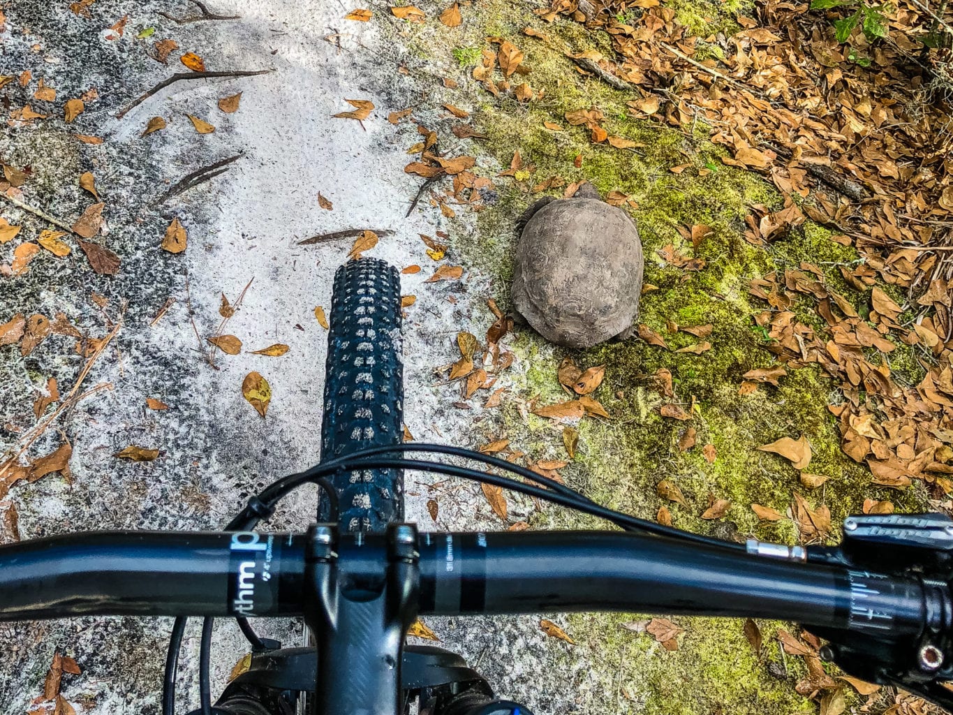 The wildlife here is strong. I ran into a handful of armadillos and turtles. Another rider mentioned he had seen a river otter. The turtles are easy to see, but the armadillos are little less predictable. You will have to be quiet if you want to get a photo of an armadillo. This trail system is great for big days and fast km's. Love how you can pedal through the corners and maintain good speed.